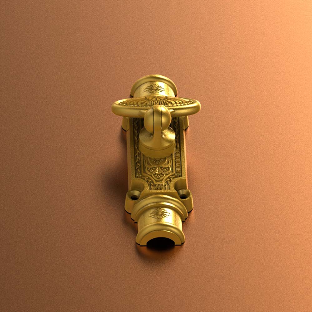 Sản phẩm chốt cremone EX 08-ZVA được sản xuất bằng vật liệu hợp kim ZDC-2 được điện di vàng.