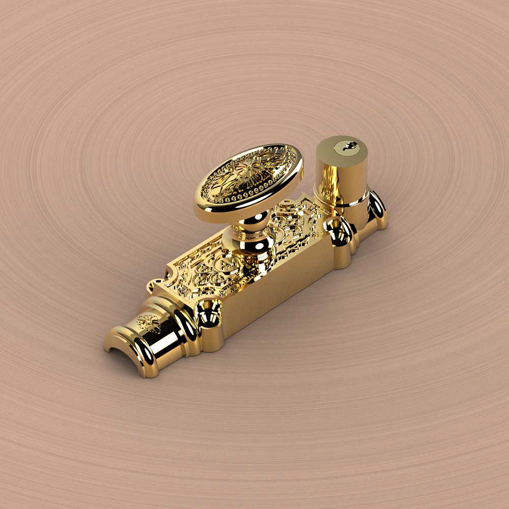 Sản phẩm Chốt Cremone HC06 được sản xuất bằng vật liệu đồng vàng (đồng thau).Các chi tiết chuyển động bên trong đều được sản xuất bằng thép mạ Zn theo tiêu chuẩn quốc tế.