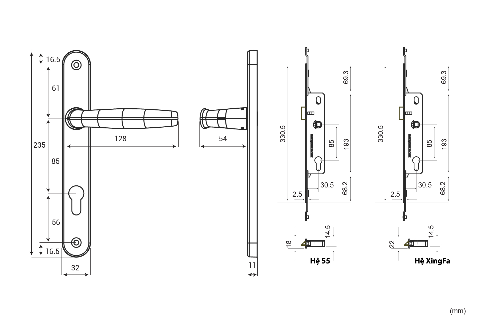 Sản phẩm khóa tay nắm TNAPDDEX66-ZTT : có 2 phiên bản thân phù hợp với các loại nhôm hệ thông dụng như Hệ 55, Hệ XingFa...và 2 phiên bản ốp phụ phù hợp cho các loại cửa 1 cánh hoặc 2 cánh.