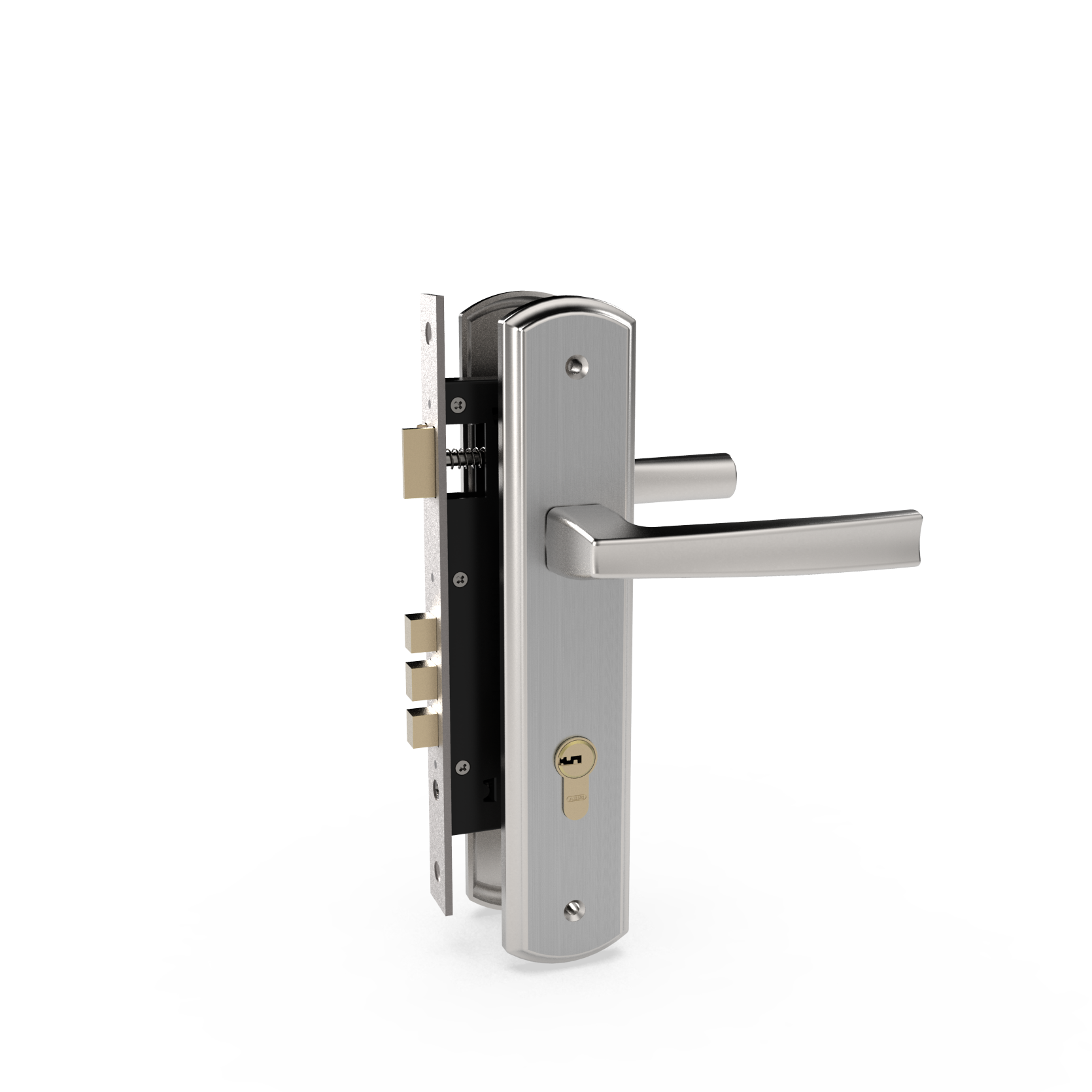 Thân khóa được sản xuất bằng tôn thép với độ dày 1,5mm, được phủ một lớp sơn tĩnh điện. Then khóa làm bằng đồng vàng (đồng thau) có kết cấu chắc chắn, an toàn. Tất cả chi tiết khác bên trong thân khóa được làm bằng tôn thép mạ Zn theo tiêu chuẩn quốc tế.