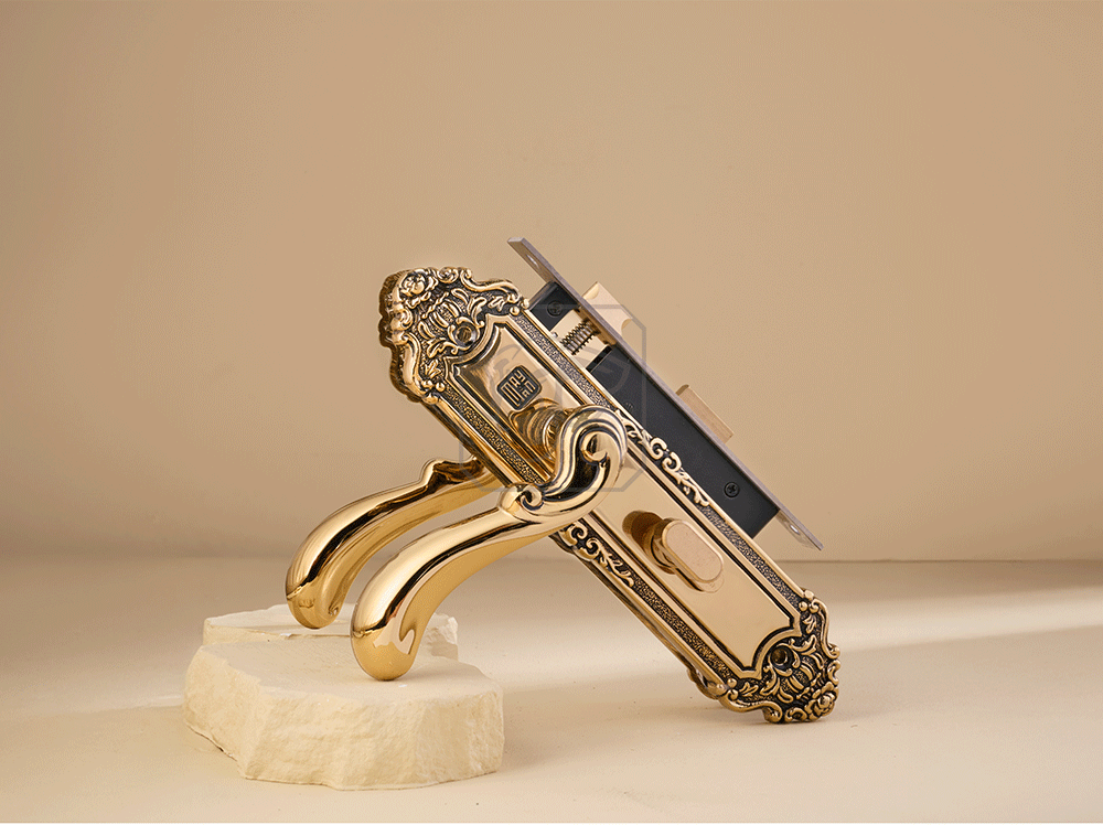 Tay ốp khóa sản xuất bằng vật liệu đồng vàng (đồng thau) mạ PVD màu vàng gold