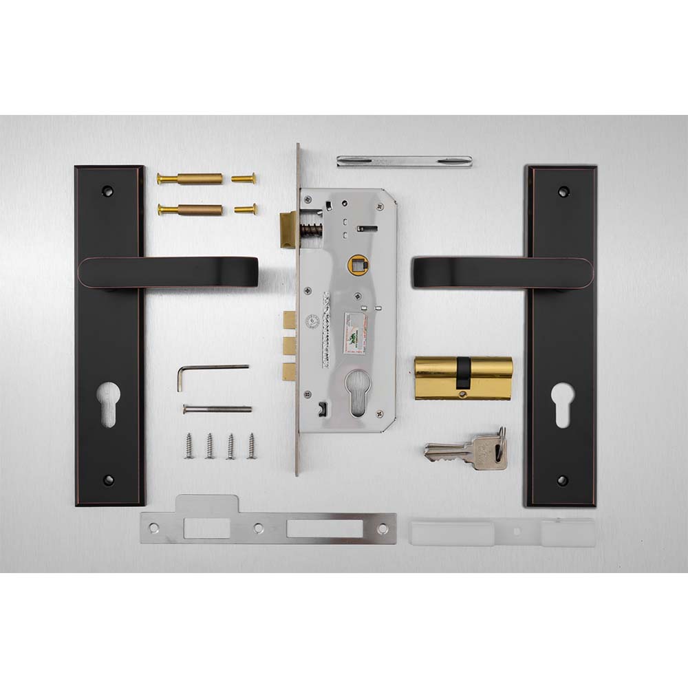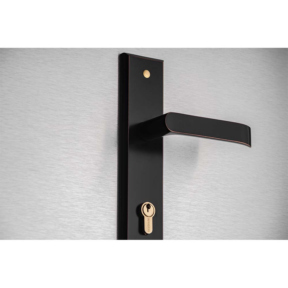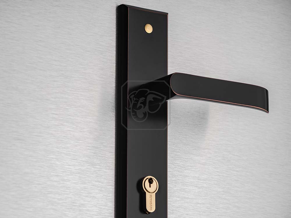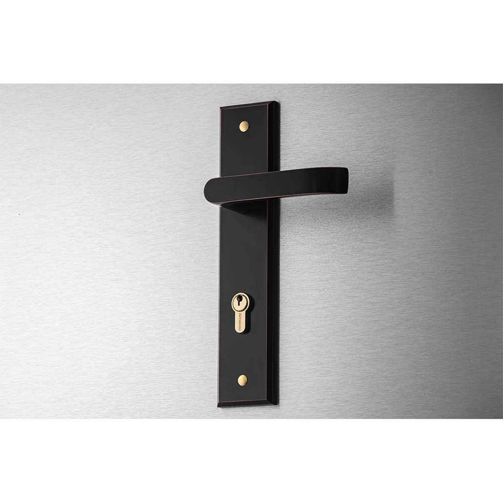 - Tay ốp khóa được sản xuất bằng vật liệu Inox 304 và được mạ màu đen viền đồng (Đồng đen American)