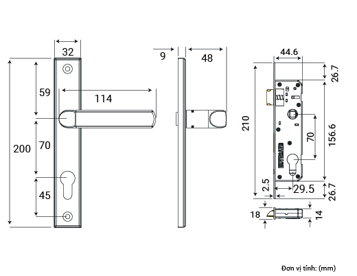 - Mặt thân khóa được làm