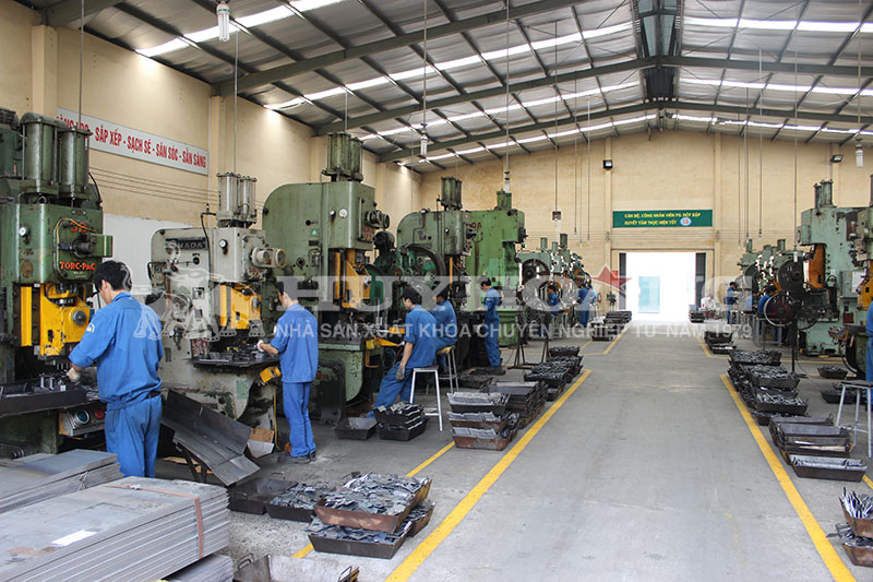 Giới thiệu một số hình ảnh nhà máy, quy trình sản xuất Khóa Huy Hoàng: Dây chuyền bản lề, sản xuất khóa tay nắm, chốt cremone, chốt cửa, khóa treo