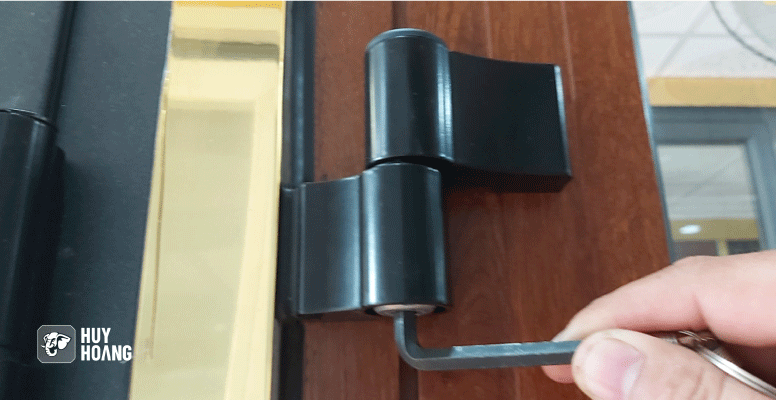 Nới lỏng ốc vít ở bản lề, dùng tay hoặc vật nâng nhẹ cánh cửa lên rồi siết lại theo vị trí mới. Đây là cách giúp đưa cánh cửa trở về đúng phương thẳng đứng ban đầu.