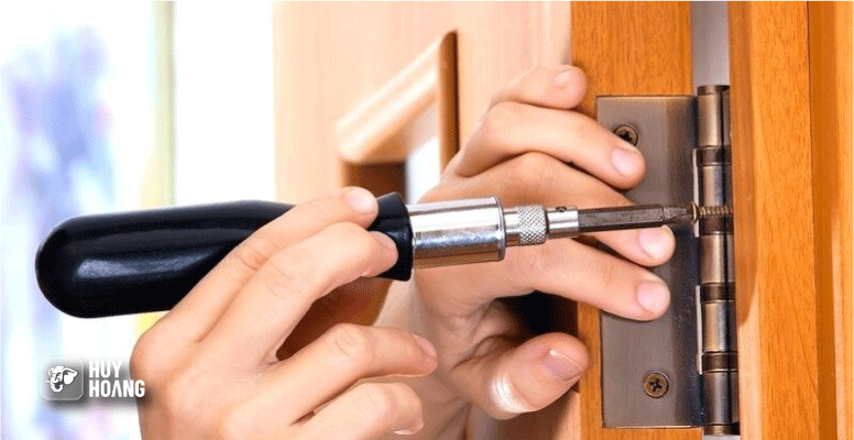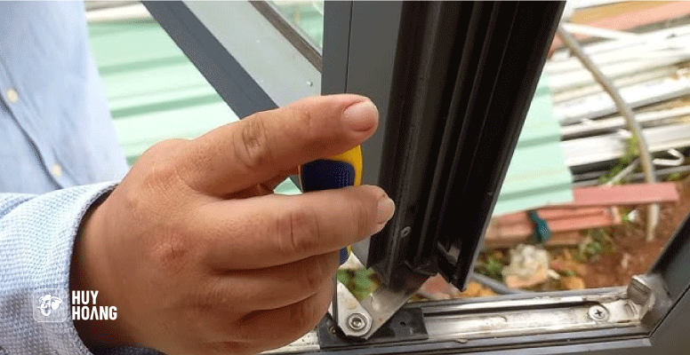 Dùng tua vít để kiểm tra các ốc vít tại bản lề, khung và thân cửa. Nếu thấy bị lỏng, cần siết chặt lại ngay. Trong trường hợp vít bị rơ, hỏng răng hoặc không thể bắt chắc, nên thay mới hoàn toàn để đảm bảo độ bền.