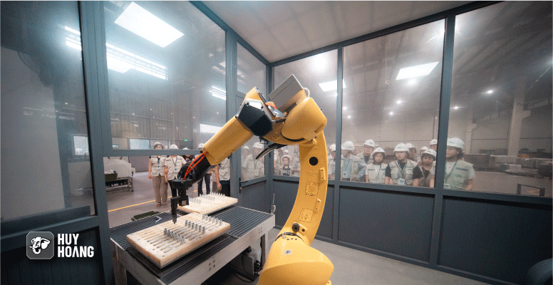 Trong buổi tham quan, các em học sinh không chỉ được khám phá môi trường làm việc chuyên nghiệp tại nhà máy khóa Huy Hoàng, mà còn tận mắt quan sát từng công đoạn sản xuất hiện đại – từ đúc, gia công đến hoàn thiện các bộ khóa cửa an toàn, chất lượng cao. Đây chính là những sản phẩm được tạo nên từ bàn tay và tâm huyết của chính bố mẹ các em – những công nhân lành nghề đang ngày đêm cống hiến tại Huy Hoàng.