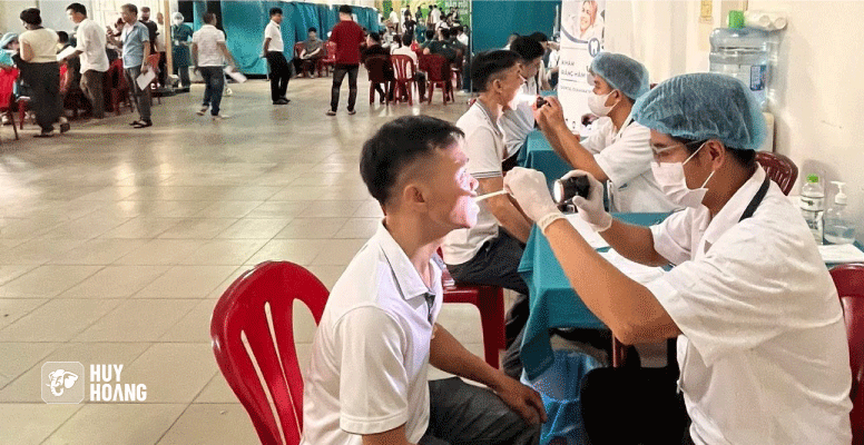 Ngay từ sáng sớm, các khu vực khám tại Nhà máy Huy Hoàng đã được bố trí gọn gàng, phân luồng hợp lý. CBCNV đến đúng giờ, xếp hàng trật tự và thực hiện từng phần kiểm tra trong không khí thân thiện, vui vẻ.