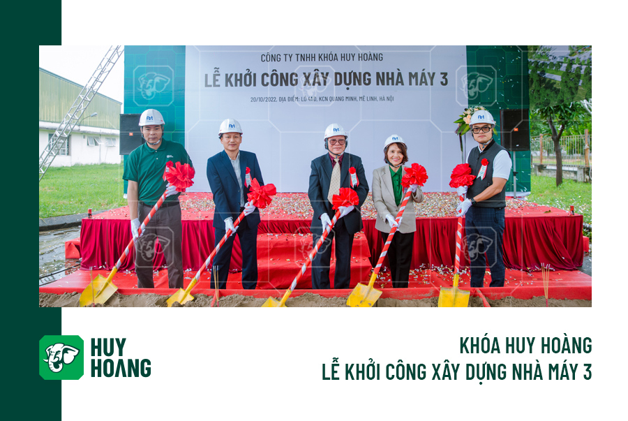 Ngày 20/10 vừa qua, Dự án nhà máy sản xuất Khóa và phụ kiện cửa số 3, cũng là nhà máy lớn và hiện đại nhất của Khóa Huy Hoàng chính thức được khởi công xây dựng trên nền đất rộng hơn 40.000m2 tại Lô 41D, KCN Quang Minh, Mê Linh, Hà Nội.